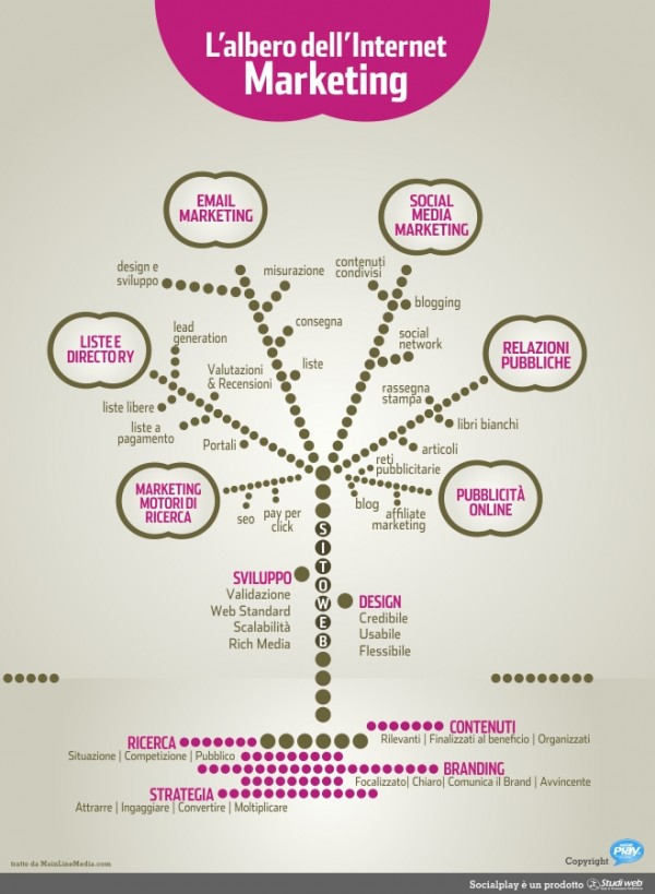 Il marketing online non è una cosa semplice. Spulciando il web alla ricerca di aggiornamenti e novità, perché sul web c’è sempre da imparare, ci siamo imbattuti in un’interessante infografica, raffigurante l'Albero dell'Internet Marketing, che non è ancora stata tradotta in italiano. Non solo i contenuti di questa infografica sono all’avanguardia e innovativi ma anche la metafora che viene utilizzata e che abbiamo riportato in una specialissima Social Play way.